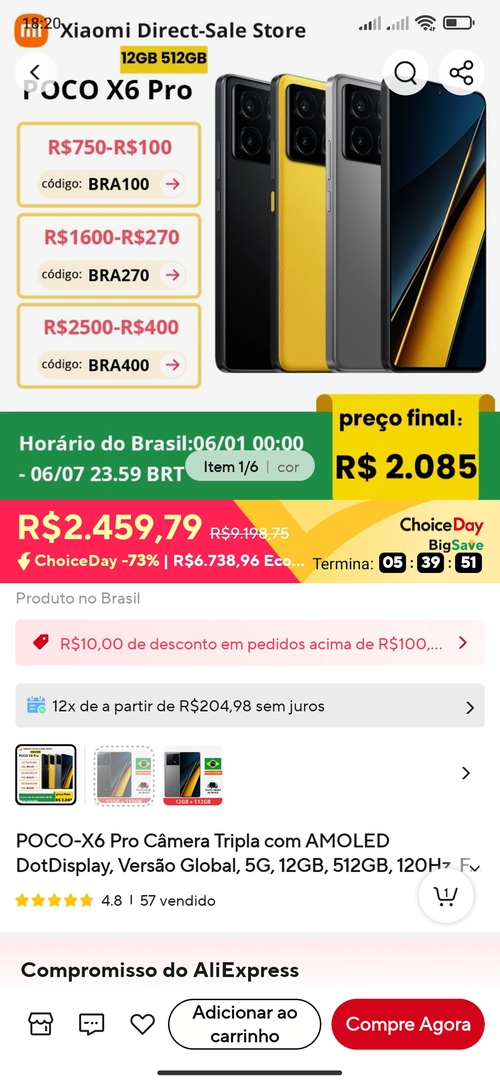 Comprei ontem na live da shopee por 1599 em 12x