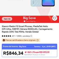 [Do Brasil] Smartphone Xiaomi Redmi 13 8GB 256GB, Carregamento 33w, Versão Global