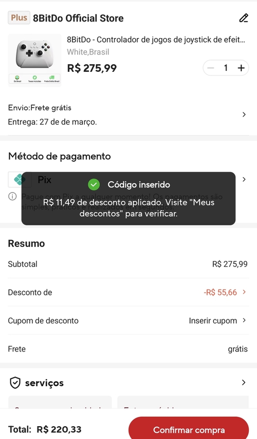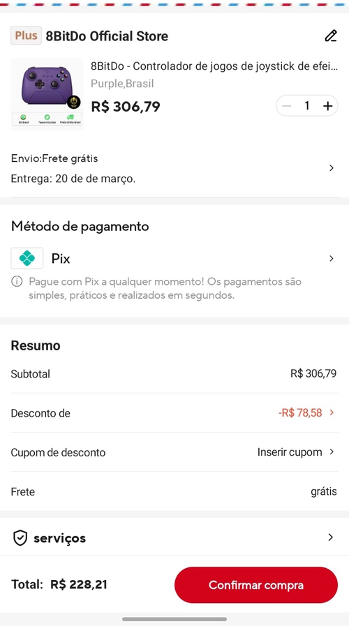 Valor do produto com cupom + moedas, produto já no Brasil sem chance de taxa
