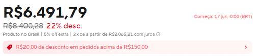 Logo abaixo do preço vai ter um link com a informação: "$20,00 de desconto em pedidos acima de R$150,00" igual ao print abaixo