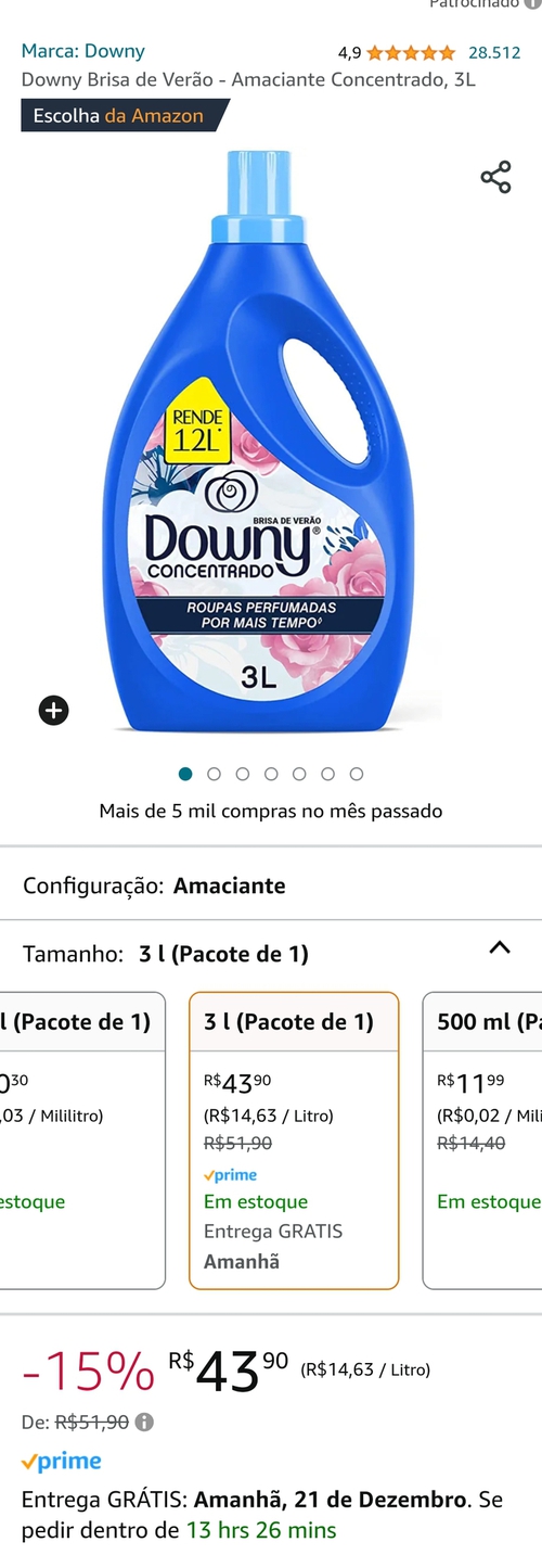 Downy Brisa de Verão - Amaciante Concentrado, 3L