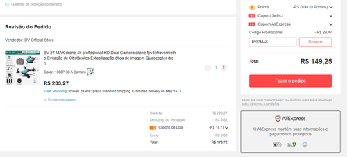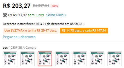 Se usar o cupom da loja mais o cupom promocional fica excelente para a versão 1080p com 3 baterias