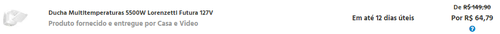 Caraca, paguei o dobro aqui na cidade no início do ano! Acho ele um ótimo chuveiro, até agora, nada a reclamar, as temperaturas são satisfatórias (uso sempre no I, no II a água já sai pelando). Aqui em casa é água de poço, a pressão não é das melhores, mas ele me aguenta muito bem, bem melhor que o antigo chuveiro que só me deu dor de cabeça.
