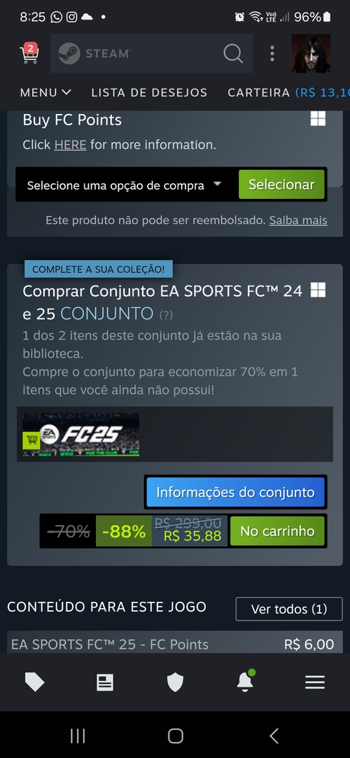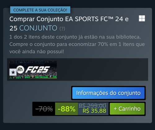 Pra quem era dizendo que é fake: basta ter o EA FC 24 na biblioteca que o 25 fica com 70% de desconto.