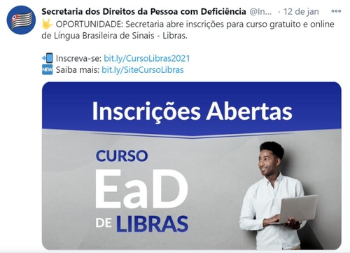 [EaD] Governo de SP - Curso de Libras online gratuito 2021