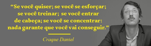 Craque Daniel é líder do Falha de Cobertura, a maior mesa-redonda da internet brasileira. Em meio aos comentários mordazes sobre as grandes questões do futebol, o Craque volta e meia revela verdadeiras pérolas da filosofia contemporânea, com um forte toque de ressentimento e amargura. “Se você quiser, se você se esforçar, se você treinar, se você entrar de cabeça, se você se concentrar, nada garante que você vai conseguir”, afirma o apresentador, mostrando que a verdade e a dor andam de mãos atadas.
