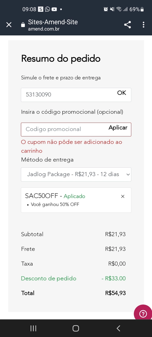 O cupom aqui não funcionou