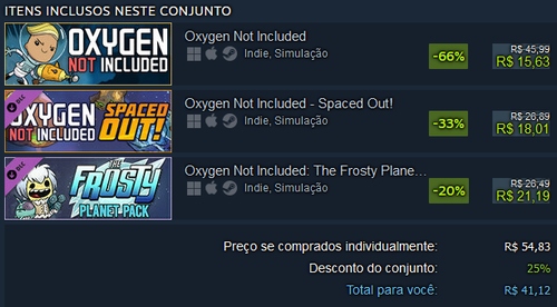 Economize 62% em Oxygen Not Included Bundle no Steam