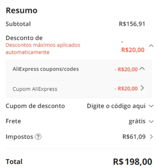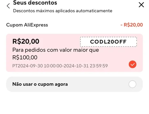 Economize R$20 com Cupom de desconto Exclusivo no AliExpress em compras acima de R$100