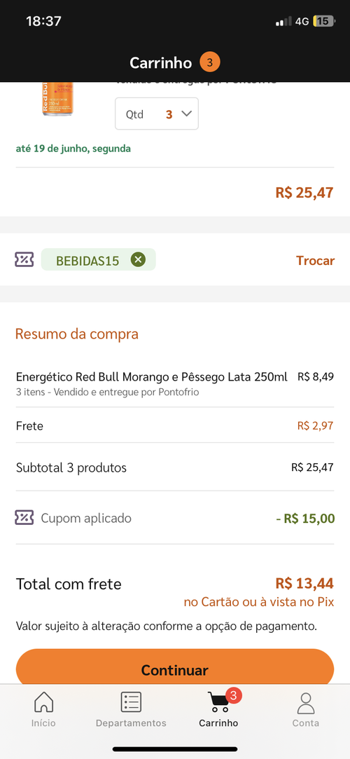 Pessoal tem varios anuncios do redbul , então va na aba e pesquise o que tem o frete de 0.99 centavos e insira o cupon que vai dar certo
