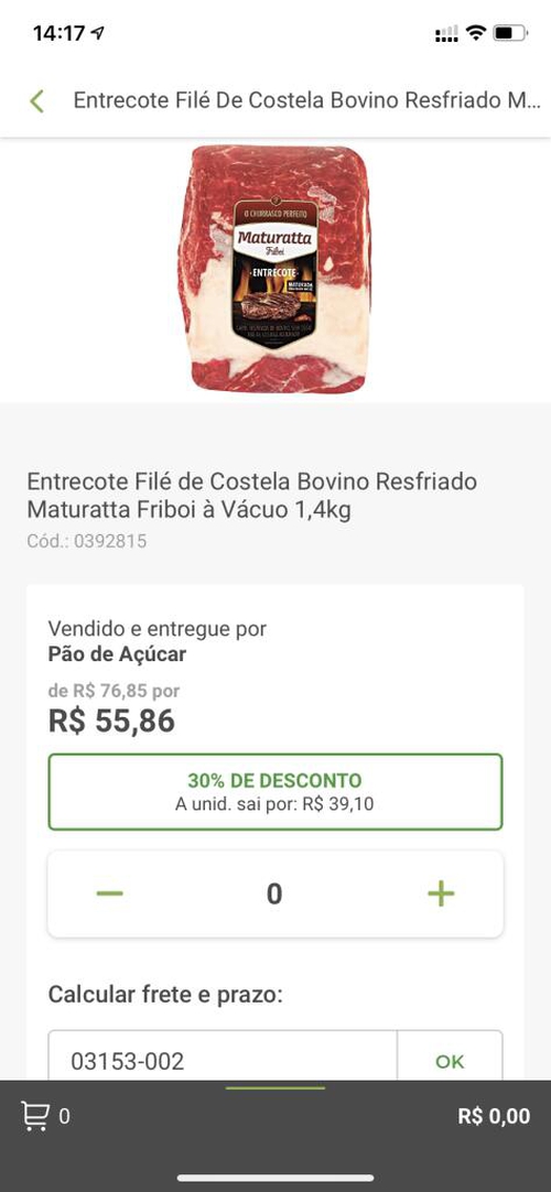 Entrecote Filé de Costela Bovino Resfriado Maturatta FRIBOI 1,4kg | R$39