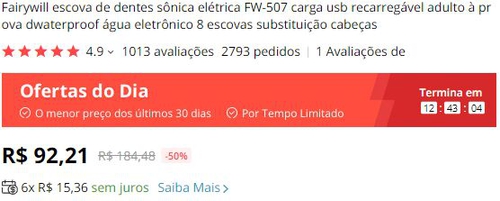 Escova de Dentes Elétrica Sônica Fairywill FW-507 | R$92