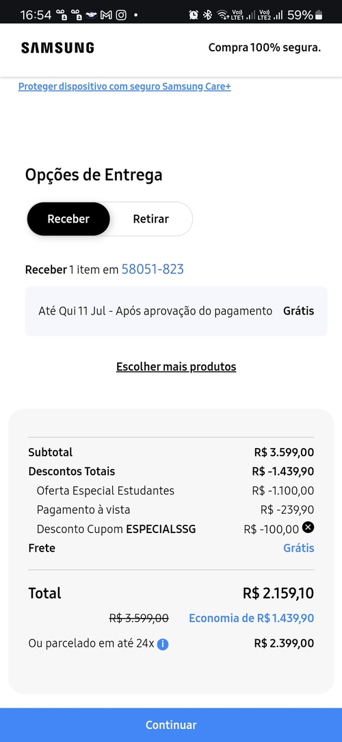 Alguém consegue ver se é possível o parcelamento sem juros pelo Mercado Pago? Para mim não estou conseguindo abrir a opção. Sempre tenho problemas em usar a função Estudante da Samsung 🤦🏽♀️
