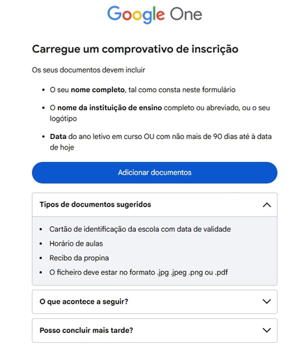 O meu nem pediu nada. Eu realmente tô estudando, selecionei a instituição correta mas coloquei um gmail pessoal mesmo pq achei que o e-mail cadastrado na instituição não iria funcionar por ser pessoal e tb não ser gmail kkkkkk