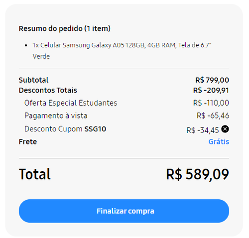 [ESTUDANTES] Smartphone Samsung Galaxy A05 128GB 4GB RAM