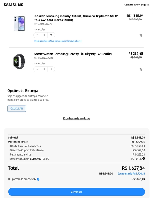 [ESTUDANTES] Smartphone Samsung Galaxy A55 5G 128GB 8GB RAM Tela 6,6 + Relógio Galaxy Fit3