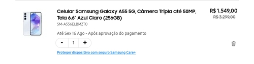 [ESTUDANTES] Smartphone Samsung Galaxy A55 5G VERSÃO 256GB 8GB RAM, Tela 6.6 Super AMOLED 120Hz, IP67, Áudio Estéreo, e-SIM, 5 Anos de Atualizações