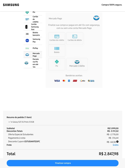 [ESTUDANTES] Smartphone Samsung Galaxy S23 5G 512GB 8GB RAM Tela 6.1 Dynamic AMOLED Snapdragon 8Gen2