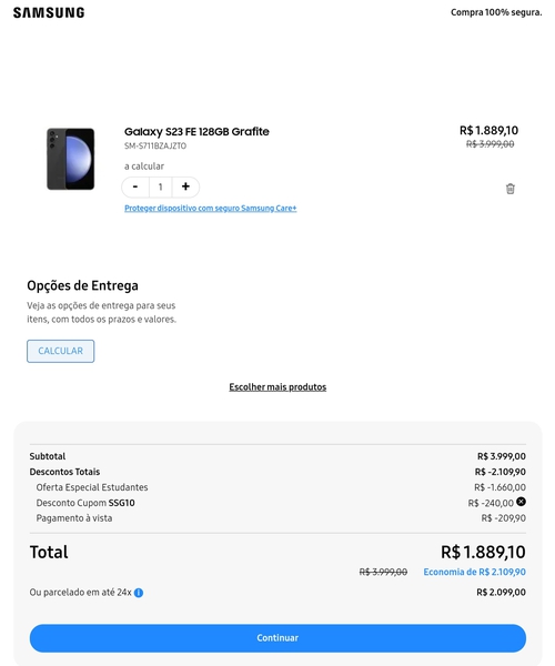 Preço muito bom! Estão querendo acabar com o estoque,antes do S24 FE ser lançado.