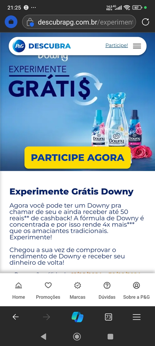 Chegou a sua vez de comprovar o rendimento de Downy e receber seu dinheiro de volta!Reembolso em conta bancaria.