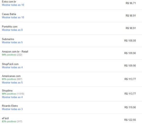 Menor preço, segundo o Google Shopping...rong> (Lembrando que Extra, Casas Bahia e Ponto Frio são do mesmo grupo):