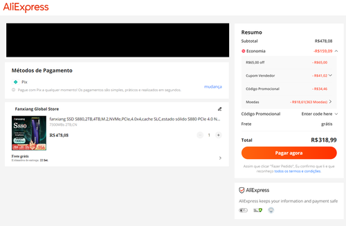 CUPOM DA LOJA PRIMEIRO (R$41) DEPOIS CUPOM BEST6 + 363 MOEDAS.