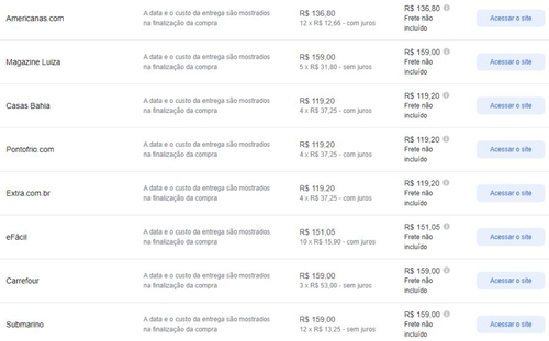 - Menor preço segundo o Google Shopping