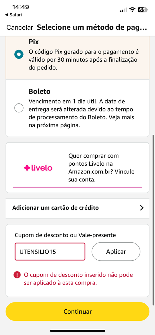 Cupom de 15 inválido, na página só está cupom de 10 disponível