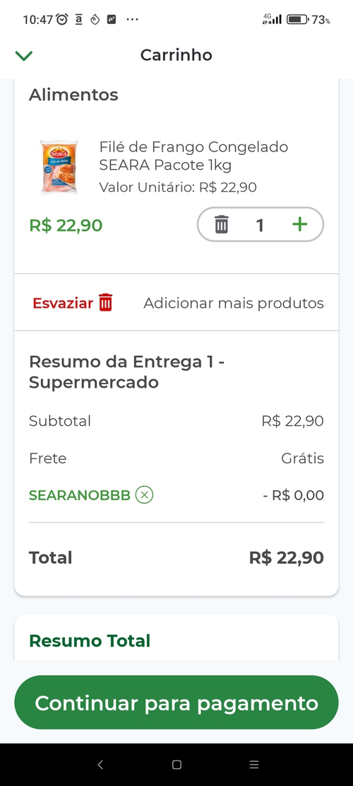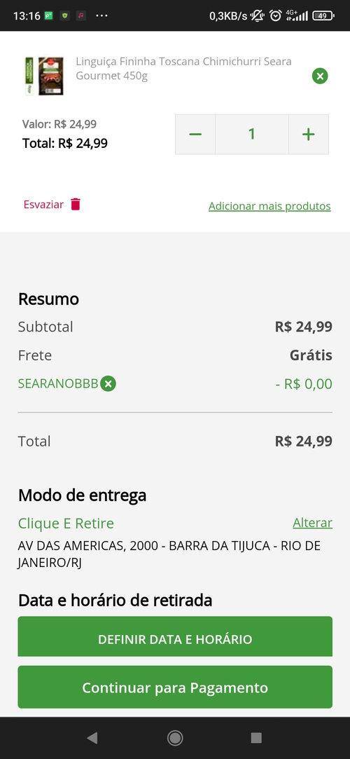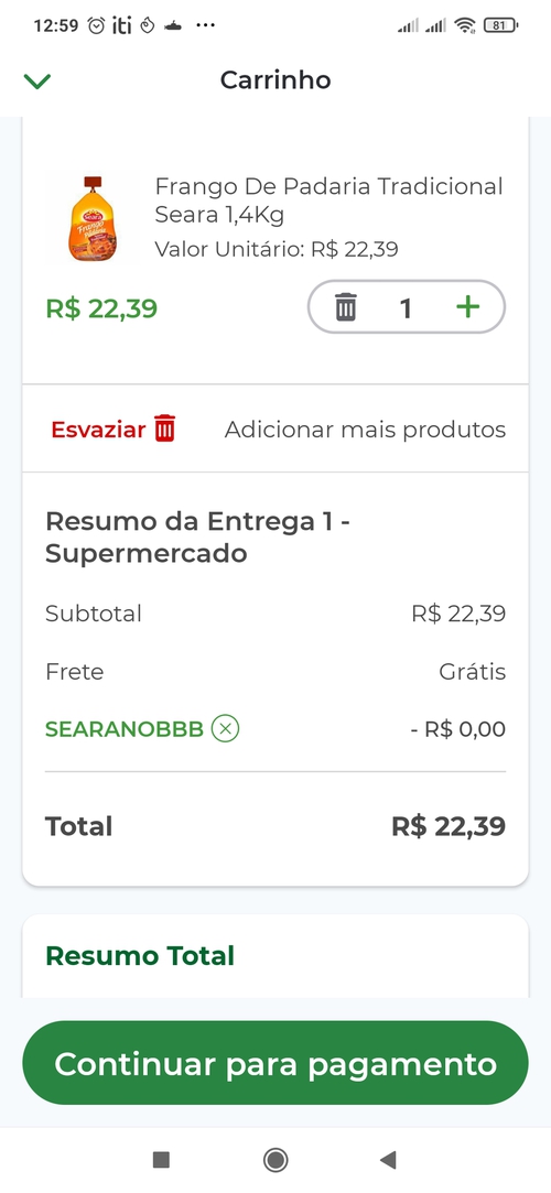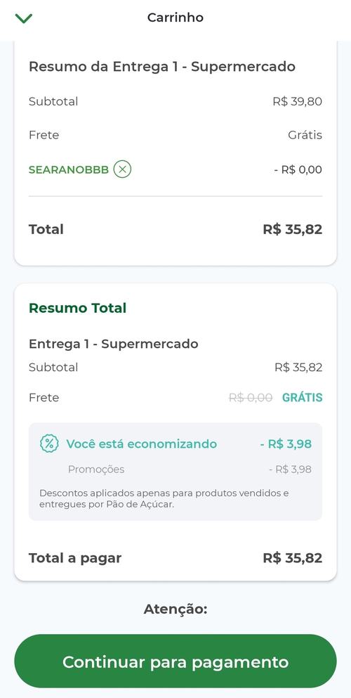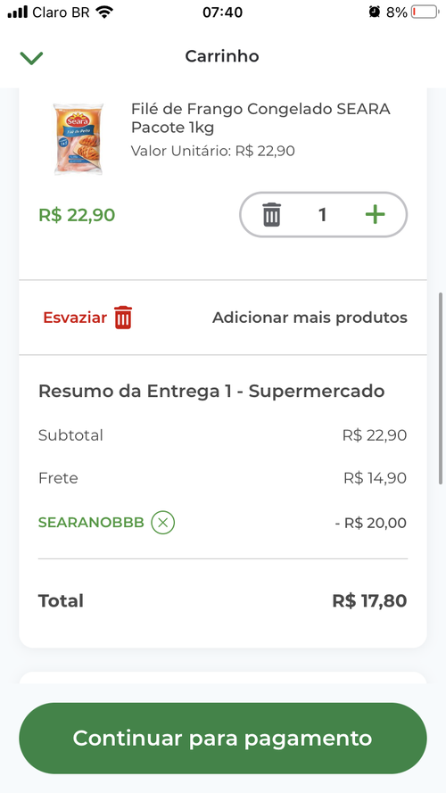 Criei conta a toa, 0 reais de desconto que tristeza kkkkk