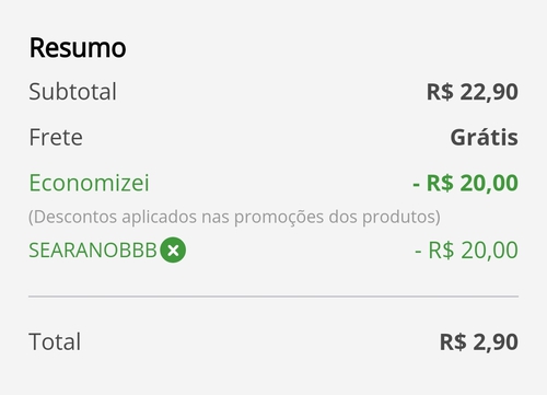 Pra galera que tá parecendo cupom zerado, tem que colocar 3 unidades pra aparecer os 20