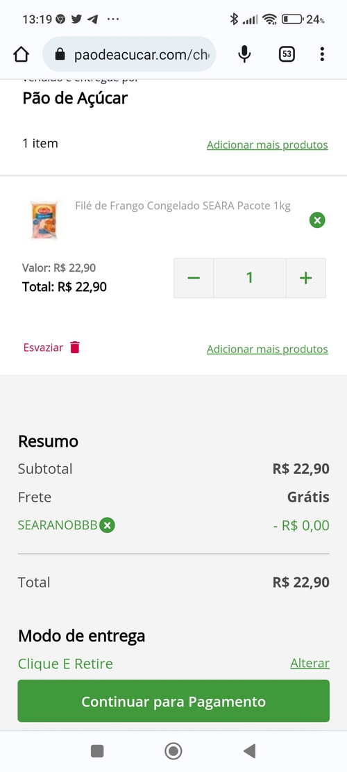 Peguei um frango se padaria por 0,15 centavos, acho que vão cancelar.