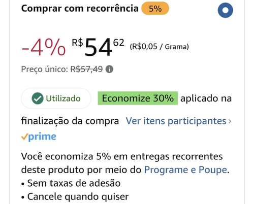 O de 2,5kg saiu 70,08 na recorrência aqui
