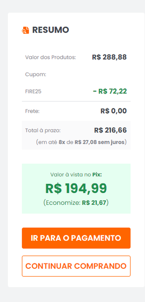 O normal também funciona o cupom e sai por R$ 235,58 a vista ou até 9x sem juros