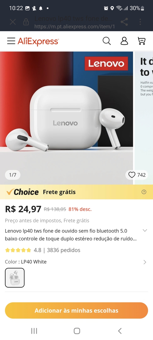 Para conseguir comprar apenas ele abrir o link no navegador no modo para computadorLINK:pt.aliexpress.com/i...mlDestaques:IPX4 (Proteção contra água)Botão touchBluetooth 5.0Bateria de longa duraçãoReview: youtube.com/w...qIAs mais quentes pela comunidade
