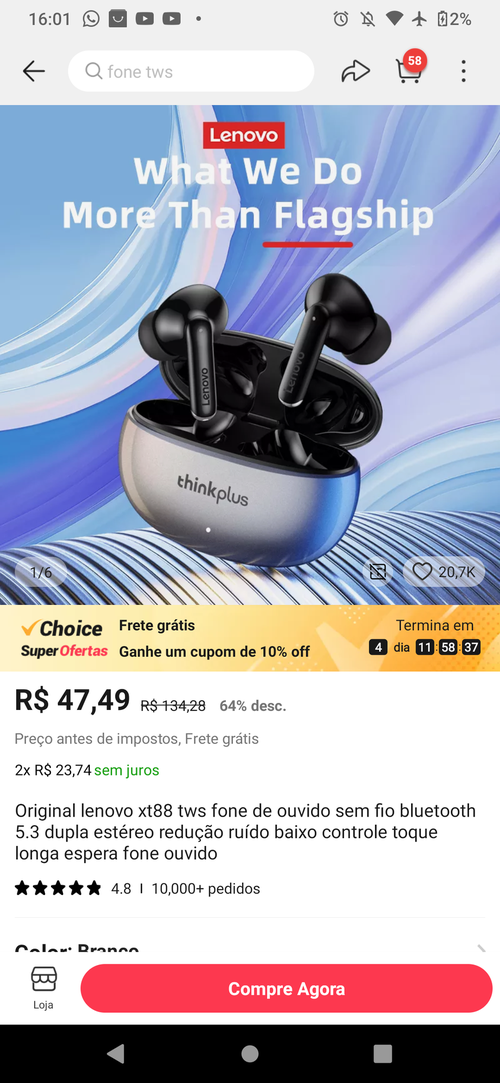 Porém cupom não tá funcionando, mas esse preço tá ótimo ainda, pegueiO app é um lixo. Mas o fone é top. Meu HT05 chegou hoje! Inclusive há muitos relatos que depois de instalado, esse app bugou vários modelos. Aqui estou usando sem o app!