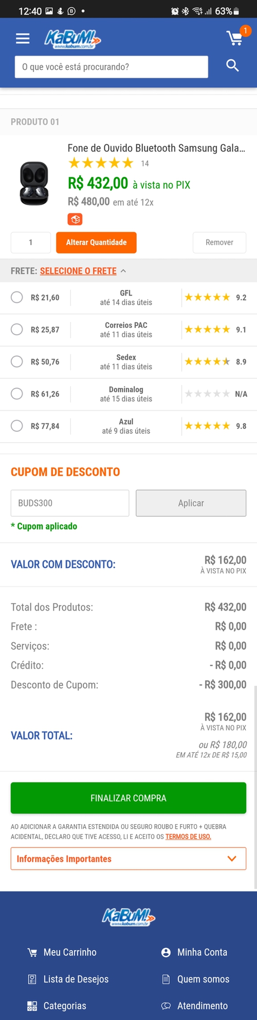 Aqui não deu certo e ainda deu cupom inválido.