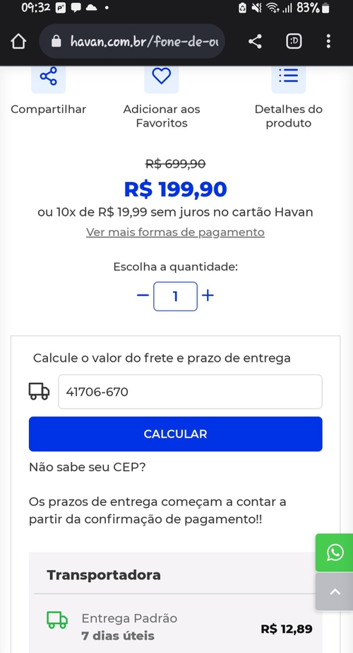 não esta disponivel para meu cep curitiba, queria trocar meu fone e esse valor esta top