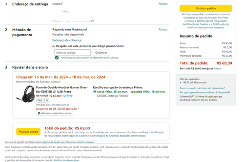Consegui usar o cupom mas o valor foi de $159,00 para $129,00