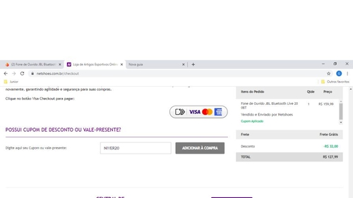 Beleza, com o frete grátis e o cupom de desconto , ao final ficou em R$ 143,99. (y)