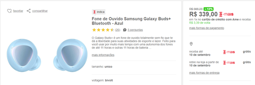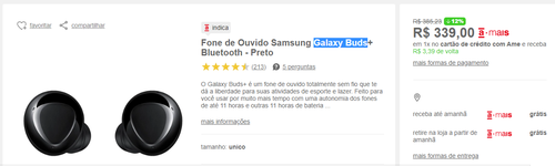 Fone de Ouvido Samsung Galaxy Buds+ Bluetooth - Preto