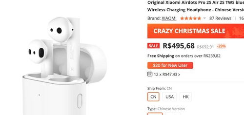 Fone de Ouvido Xiaomi Airdots Pro 2S Earphone | R$293