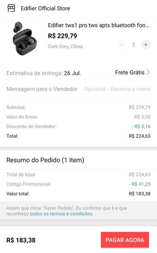 Fones de ouvido Edifier TWS1 Pro Bluetooth 5.2 Aptx | R$183