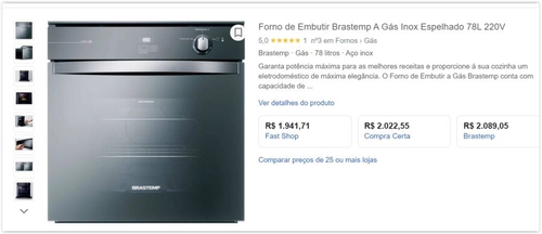 Forno de Embutir a Gás Brastemp 78 Litros Cor Inox BOA84AR - 220V | R$ 1823