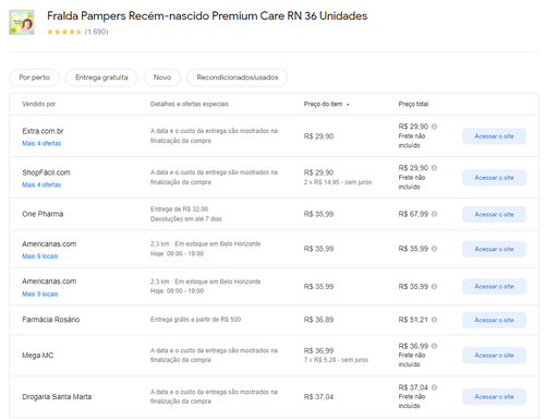 Fraldas Pampers Premium Care Recém Nascido RN+ 36 Unidades