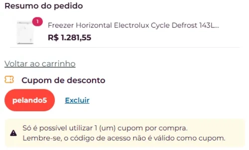 Freezer Horizontal Electrolux Cycle Defrost 143L com função Turbo Freezer Uma Porta (HE150) - 127V ou 220