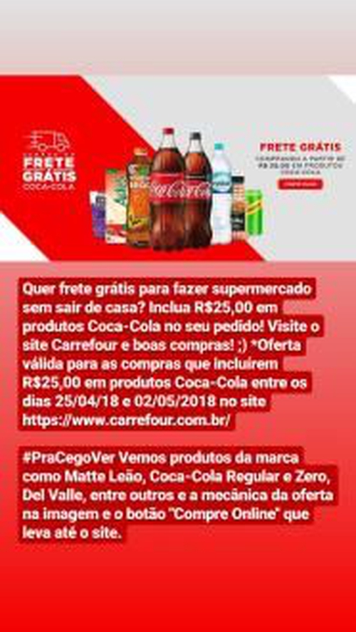 O Carrefor esta dando frete gratis para quem incluir R$25,00 em produtos da coca cola