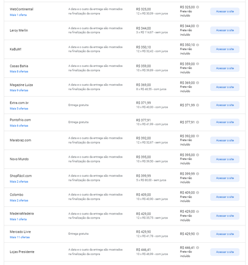 Menor preço segundo o Google Shopping