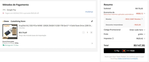 Para chegar no preço utilize a forma de pagamento do Google Pay e Moedas.