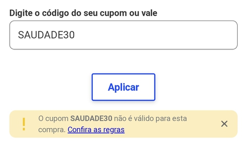 Aqui deu que o cupom não pode ser usado pra essa compra. Será que é para quem não compra a algum tempo?