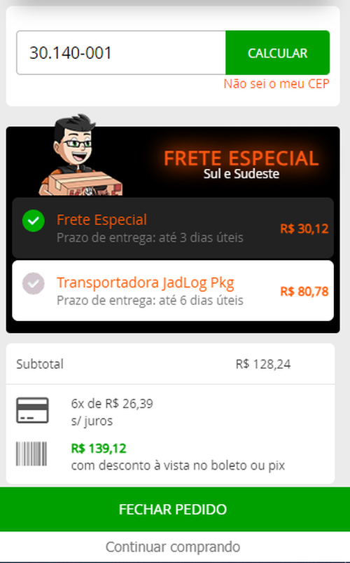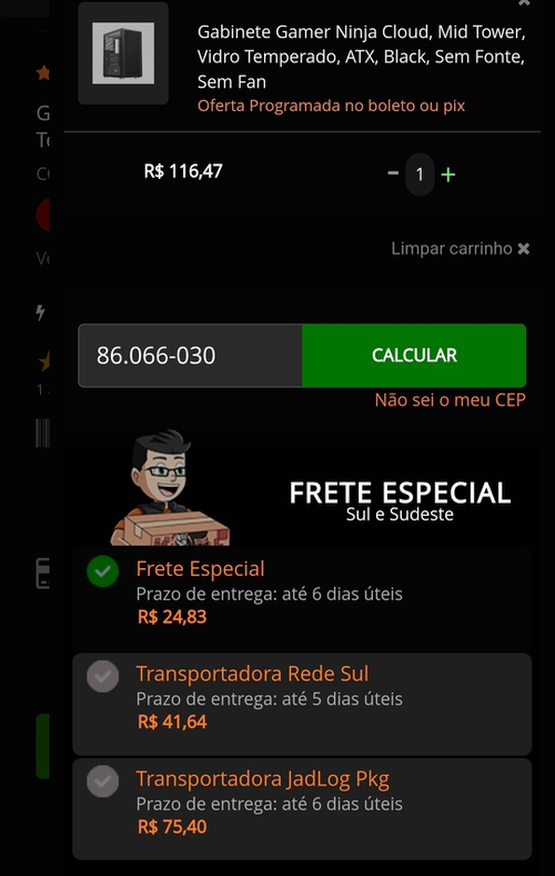 102,00 o frete para Bahia kkkkk